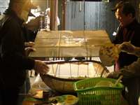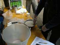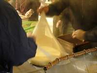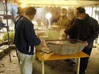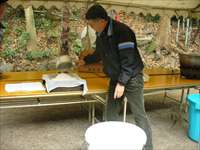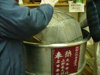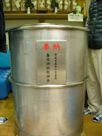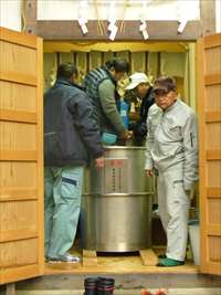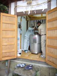 造酒斎殿 酒樽に酒米を順次投入して いきました |