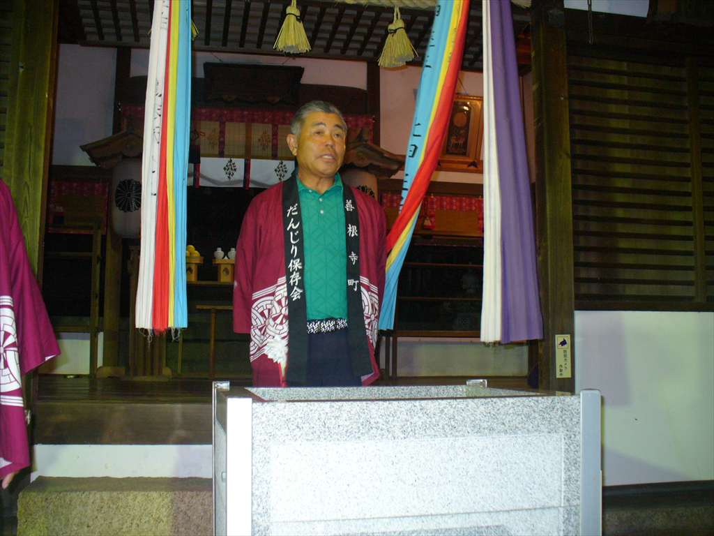![]() 善根寺地車保存会 会長 田中 勝己 |
