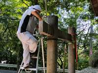 善根寺 春日神社 第二鳥居の修復工事 2017年5月21日