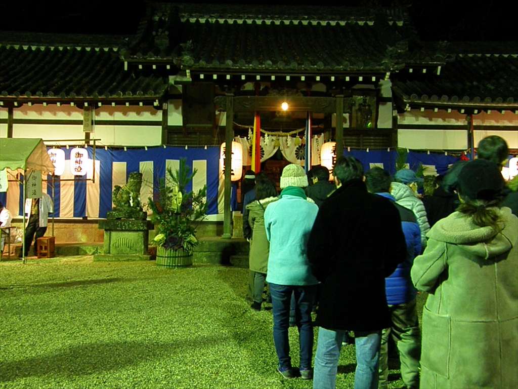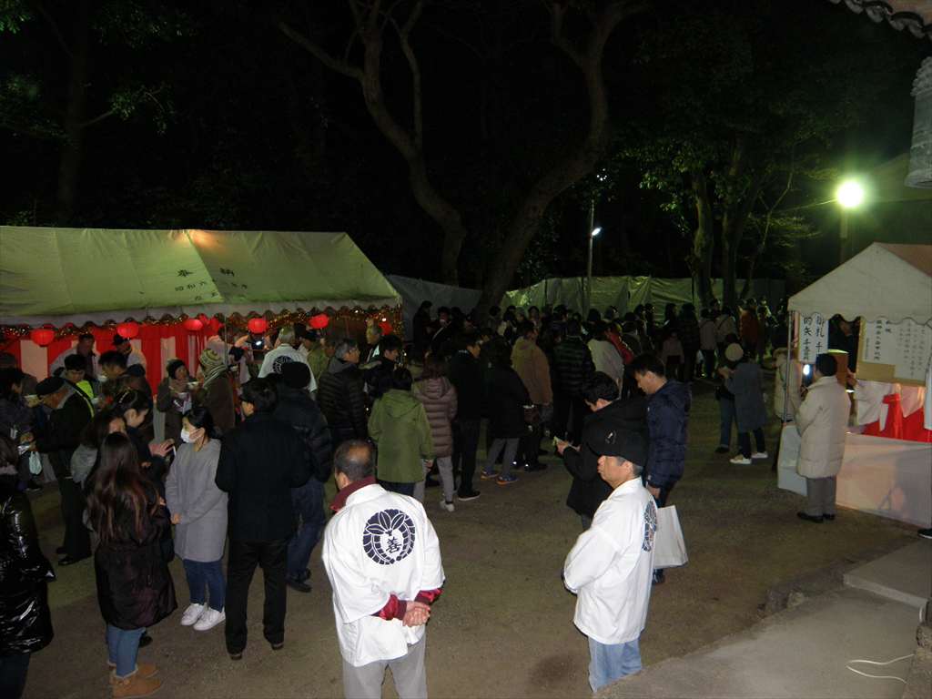 元日まであと20分です。 | 初詣の方でいっぱいです。 | 初詣の方でいっぱいです。 | 敬神会 会長 築山守亘 |