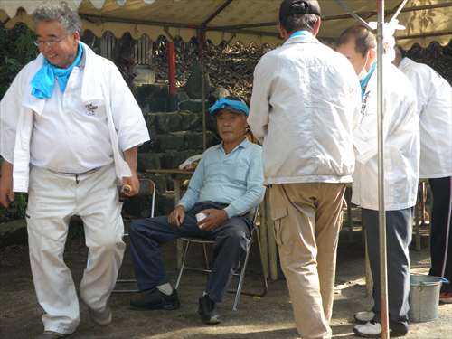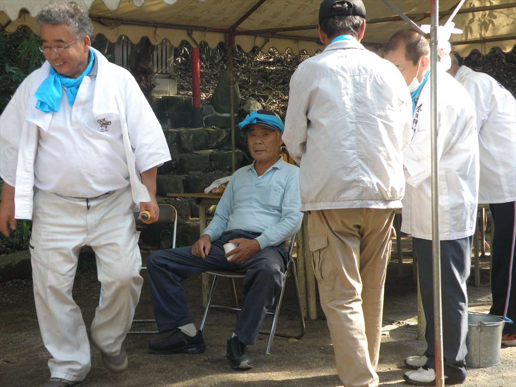 赤色タオル 今年の宮座主 黄色タオル 来年の宮座主 宮座主の皆さんで、朝晩毎日カイでかくはんいたします。 |