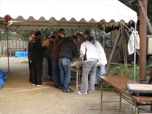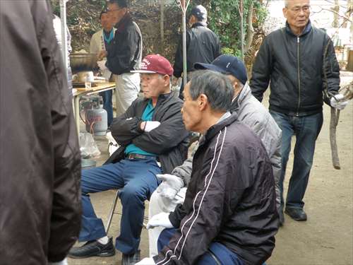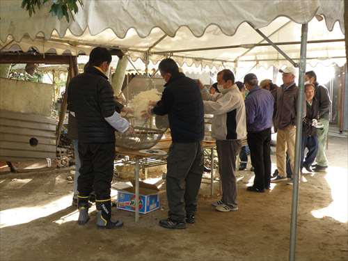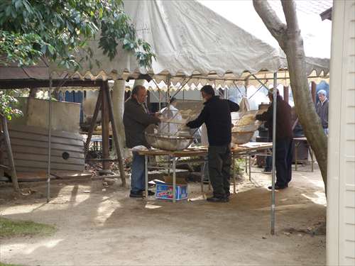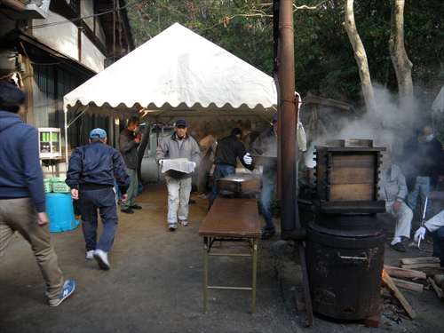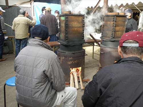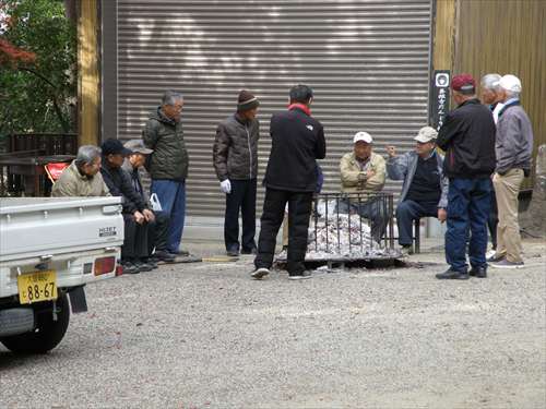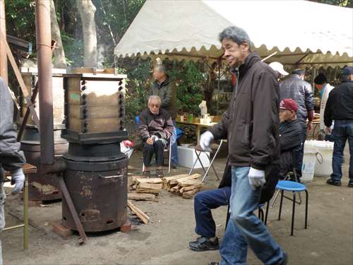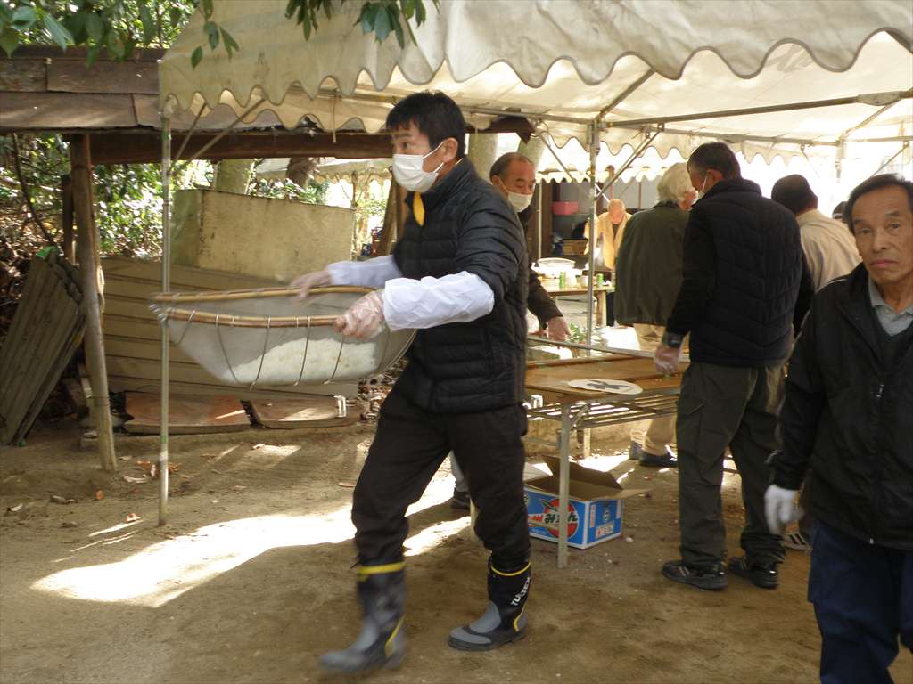 御神酒造りで大事な火をおこしに毎年朝一番に 来ていただいてます。 田中様(中央) |