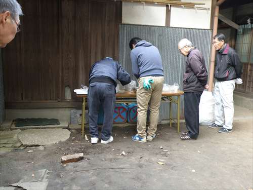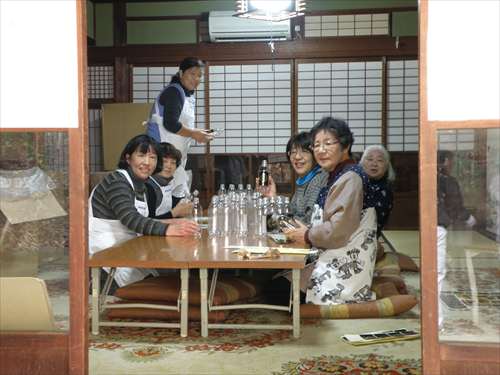 敬神会 婦人部 小分けのボトルにラベル貼り作業 |