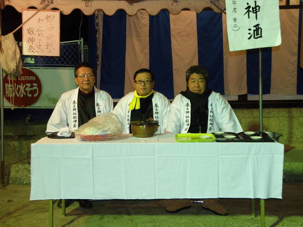 敬神会 副会長 岸沢富美雄(左) 敬神会 顧問 築山守亘(中) 敬神会 会長 山内 勇二(右) |