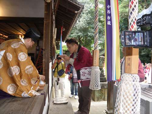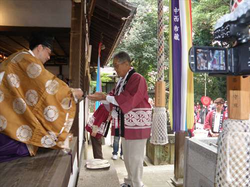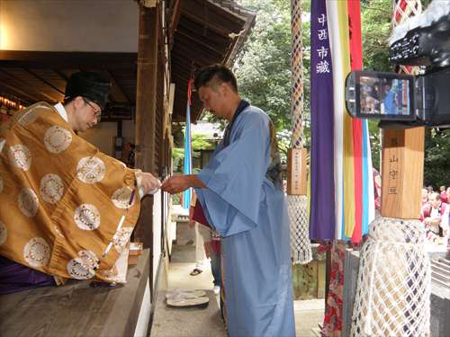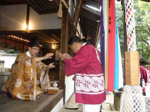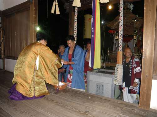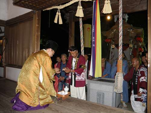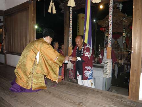 敬神会 会長 山内 勇二(右) 善根寺自治会 会長 山添 勉(左) |