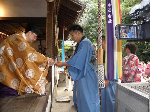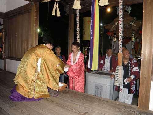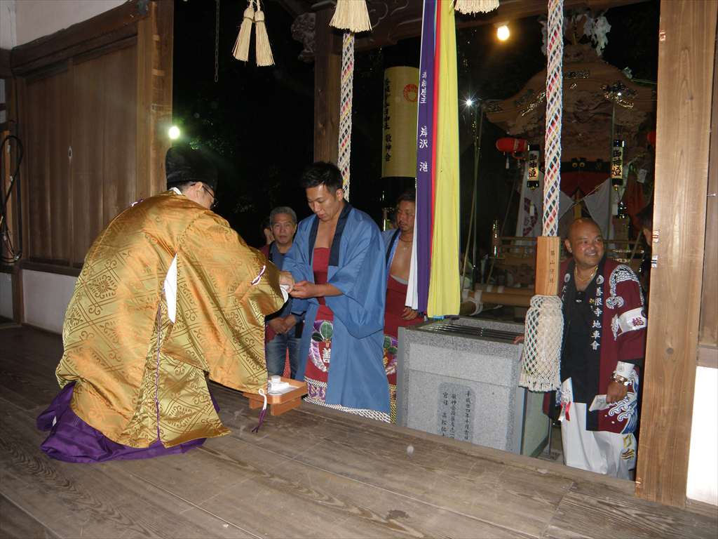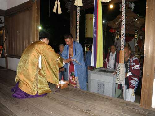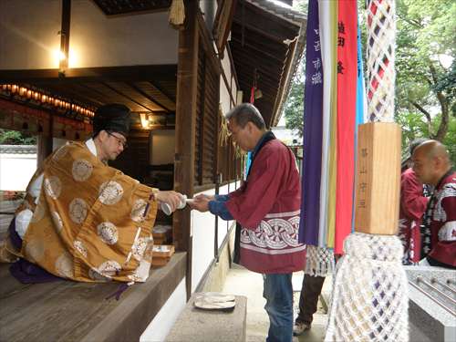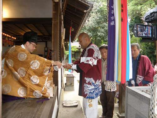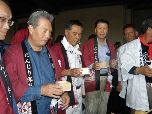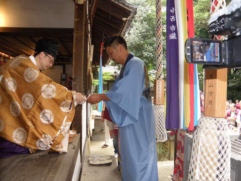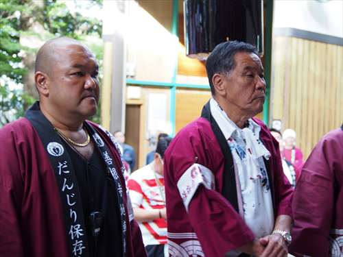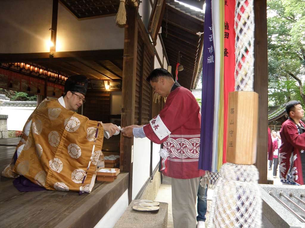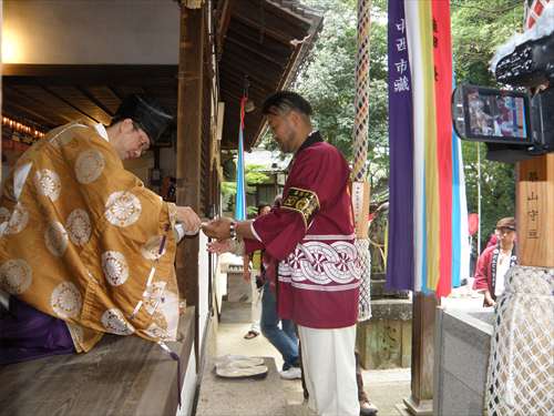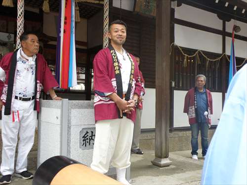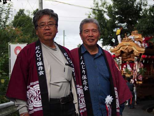 善根寺地車保存会 会長 田中 勝己(左) 敬神会 会長 山内 勇二(右) |