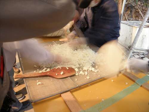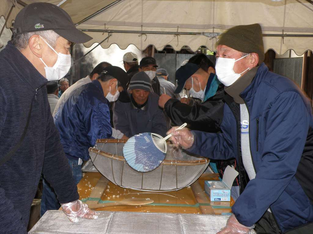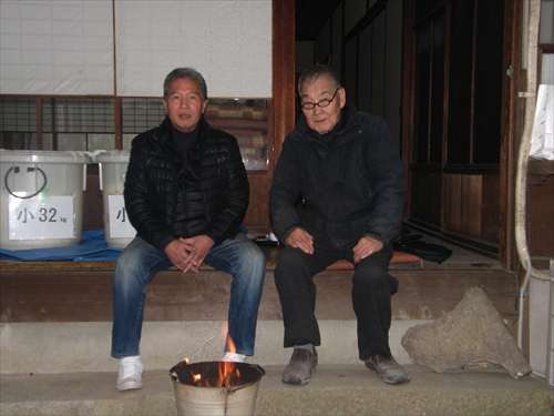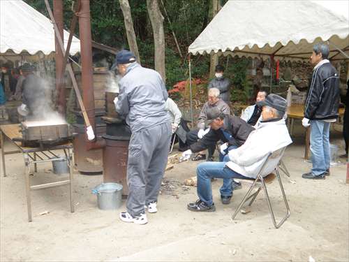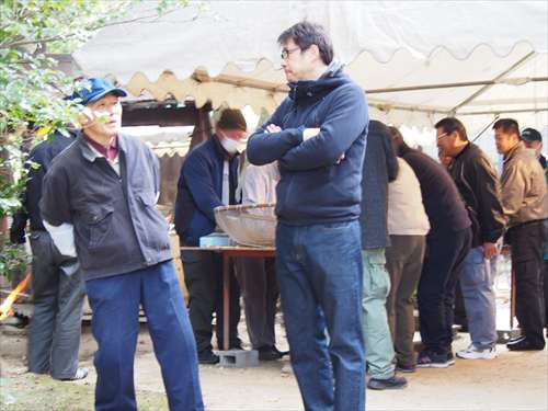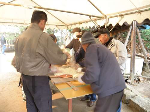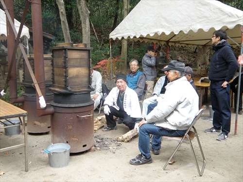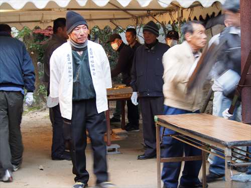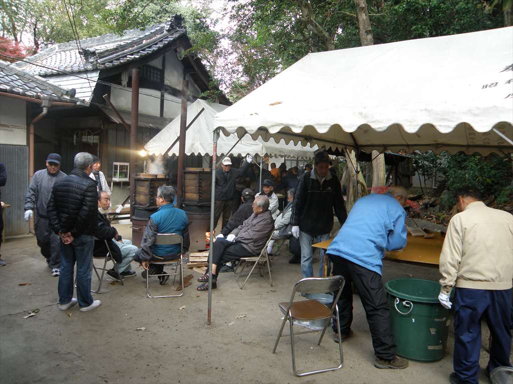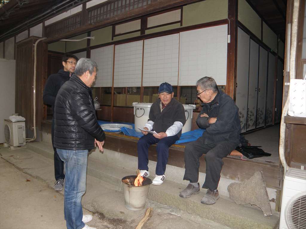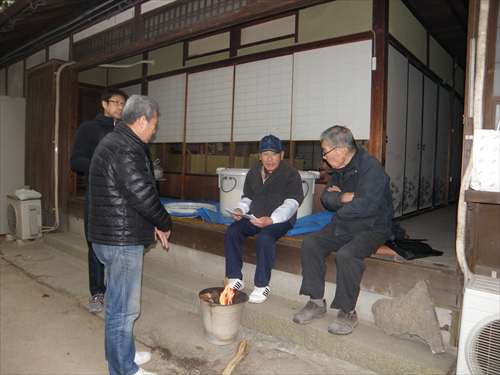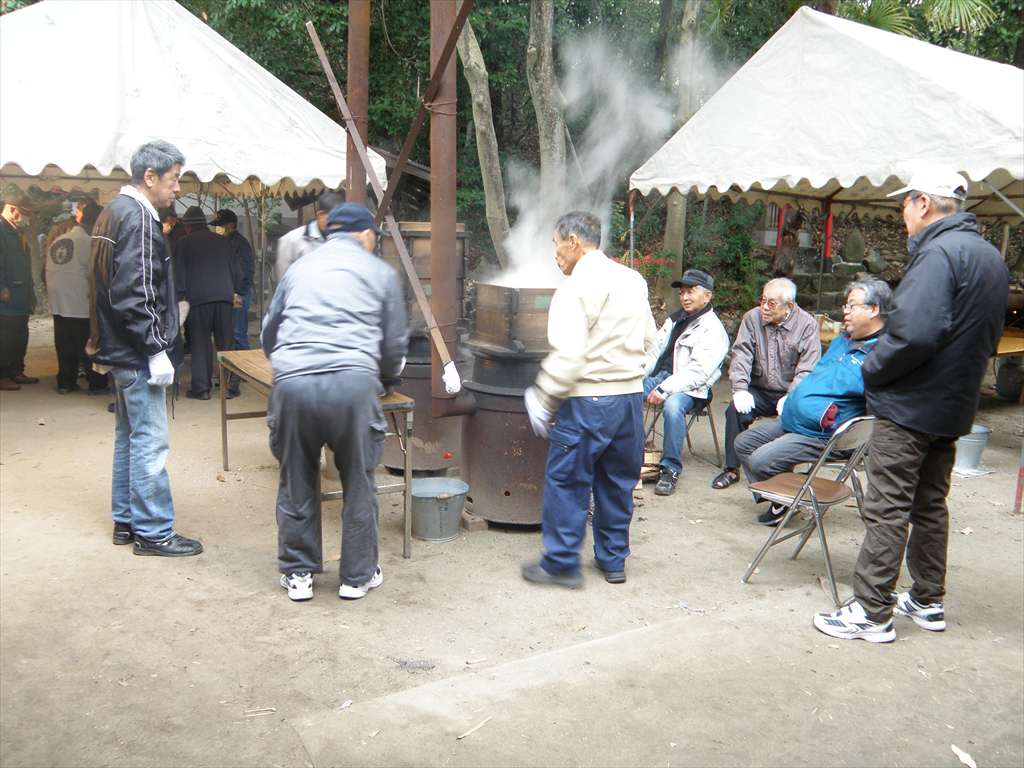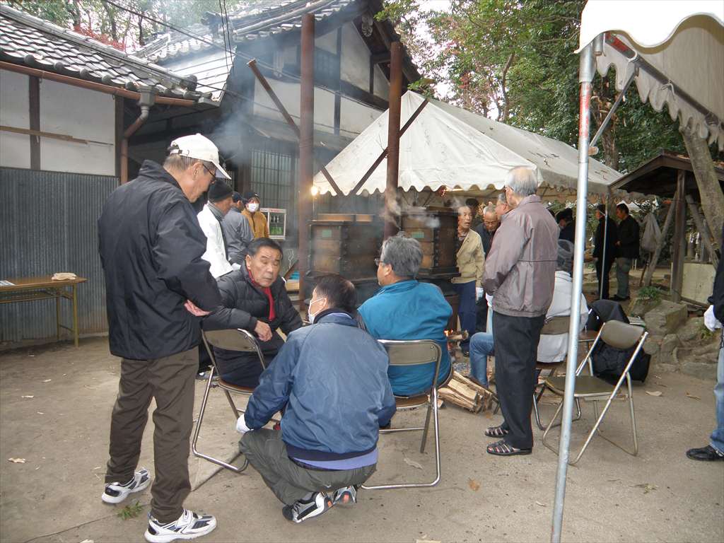 宮座主の皆さんで、朝晩毎日カイでかくはんします。 |