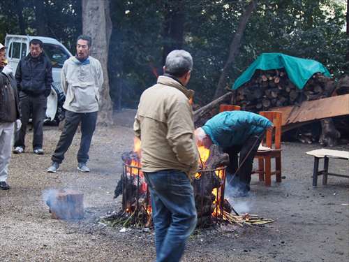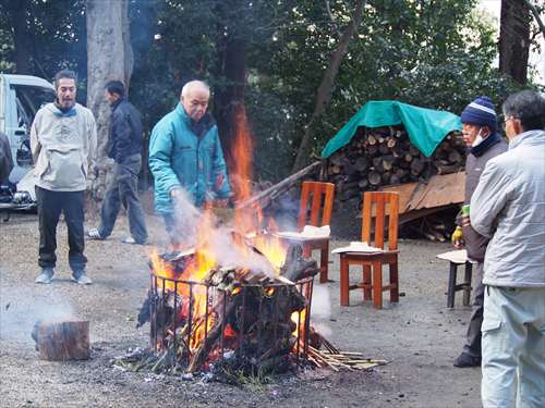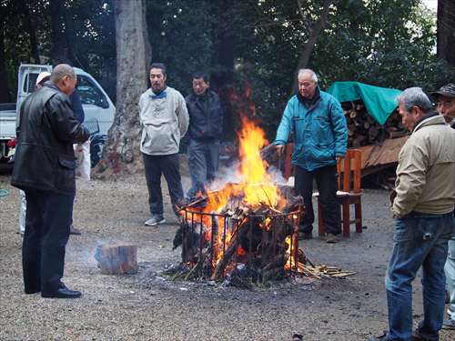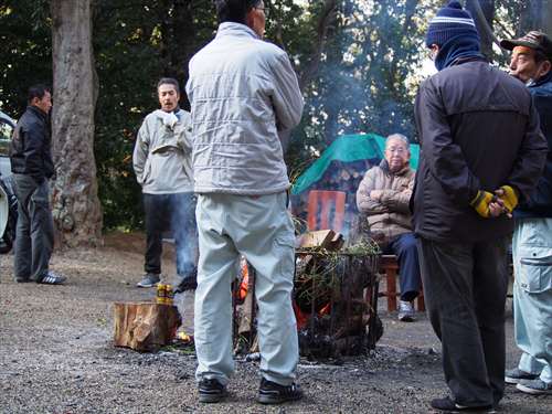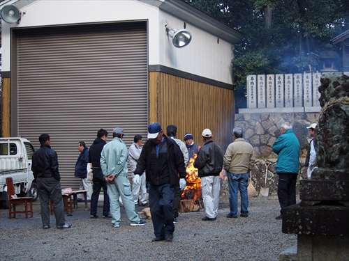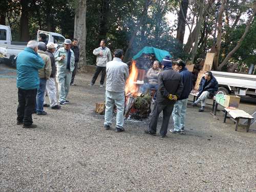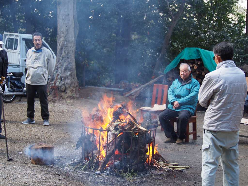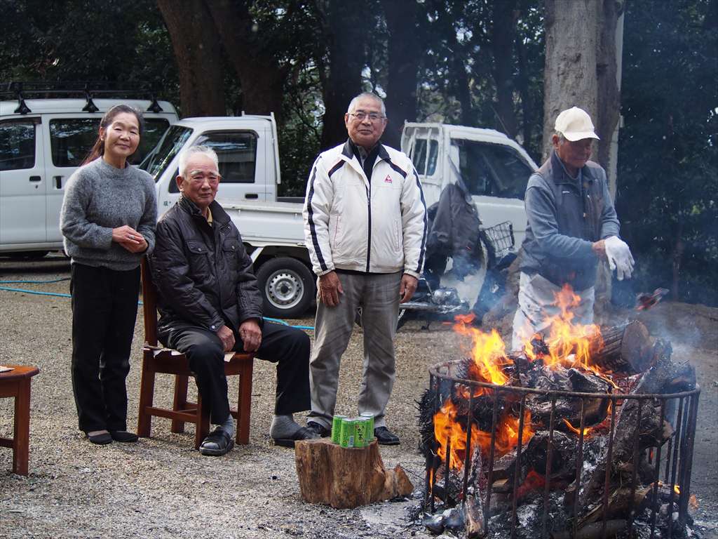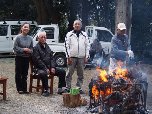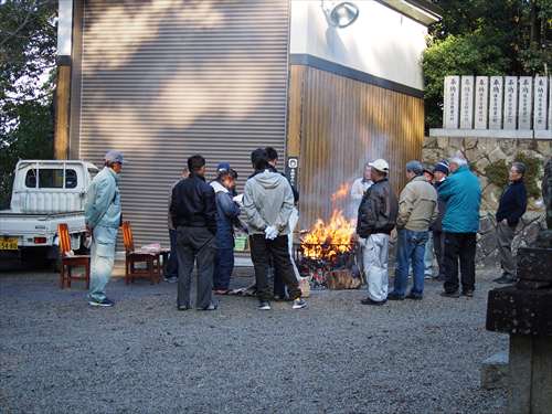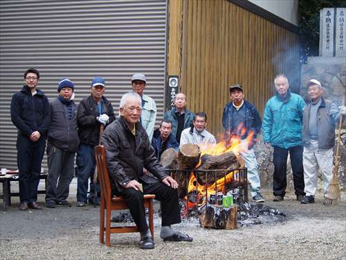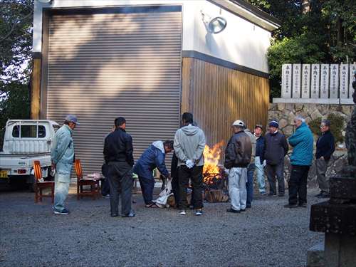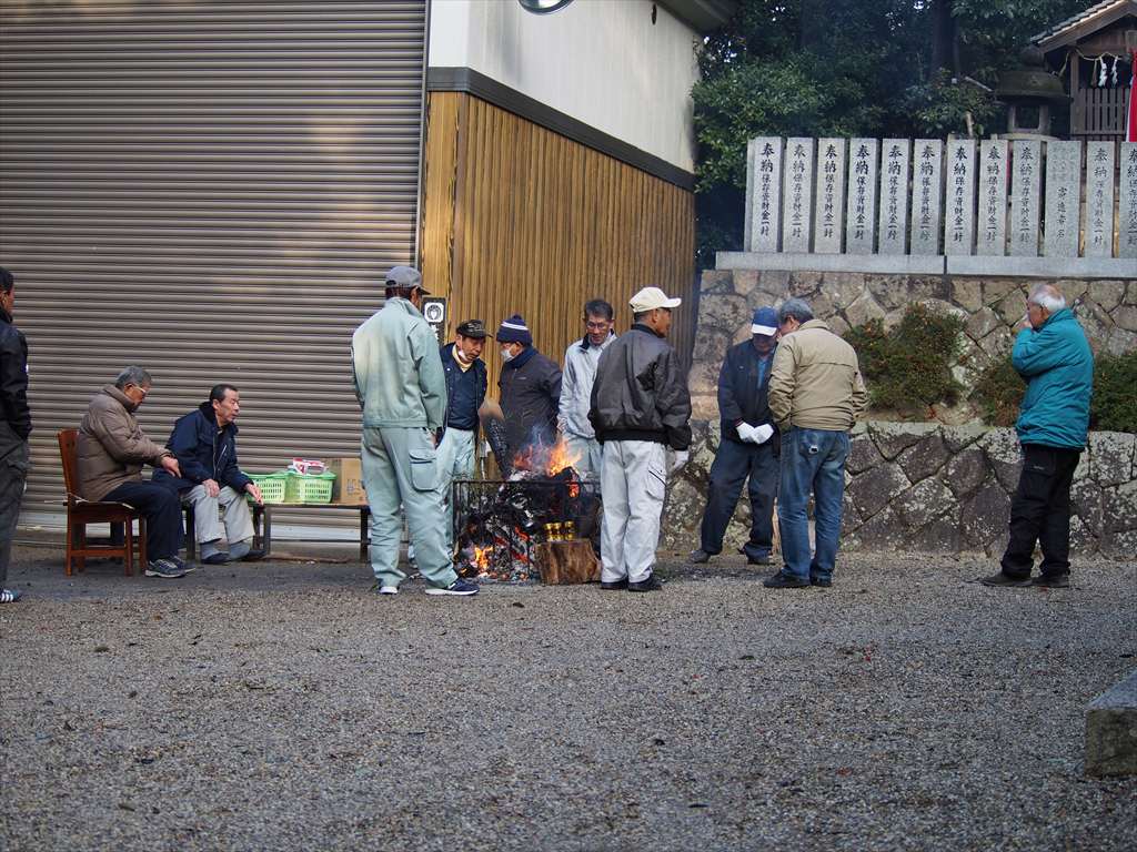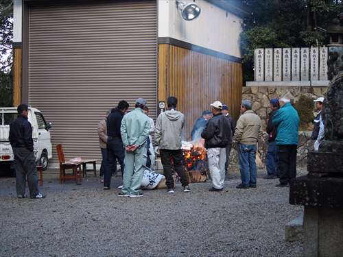 敬神会 会長 山内 勇二 竹を主材料に,円柱状,あるいは円錐形,方形などに組み,中心の心竹に,御幣に相当する飾りや縁起物を付け,正月の松飾り・注連縄(しめなわ)・書き初めなど一緒に焼く。とんど焼きのは灰は魔除け、厄除けの力があり、家の周りに撒くと良いともされています。日本全国に伝わるお正月の火祭り行事です。 |