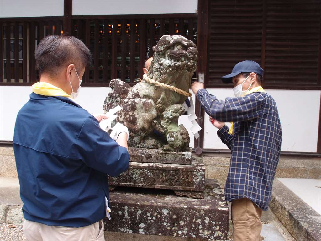 第一鳥居 しめ縄取り替え無事修了いたしました。
