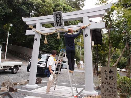 第一鳥居 しめ縄取り替え