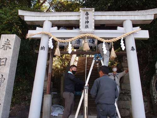 敬神会 会長 岸沢 冨美雄 一の鳥居・二の鳥居前に、提灯を吊るす作業になります。 マスク付けての作業は大変です。 新コロナウイルス大阪府で9日124人感染確認 |