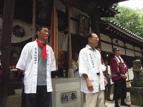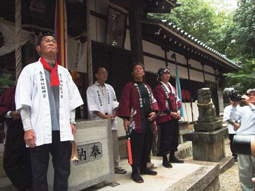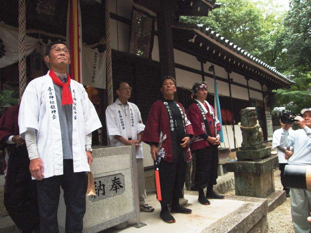 善根寺春日神社 敬神会 会長 東野 光男 左から2人目 宮座主 山添明彦 左から1人目 |