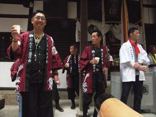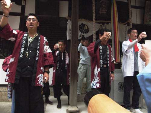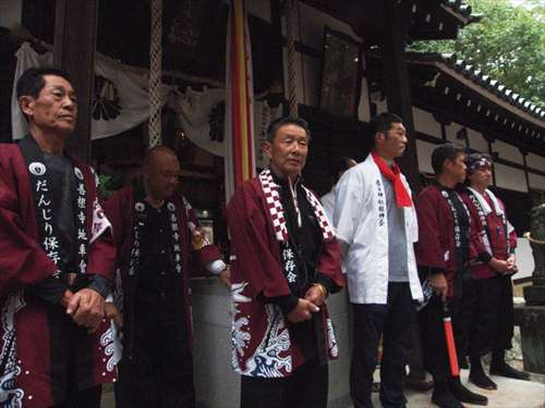 善根寺地車保存会 会長 高木厚彦 左から3人目 善根寺自治会 会長 東 和男 左の1人目 |