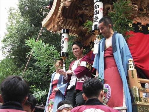 善根寺地車保存会 会長 高木厚彦 左から3人目 善根寺自治会 会長 東 和男 左から1人目 |