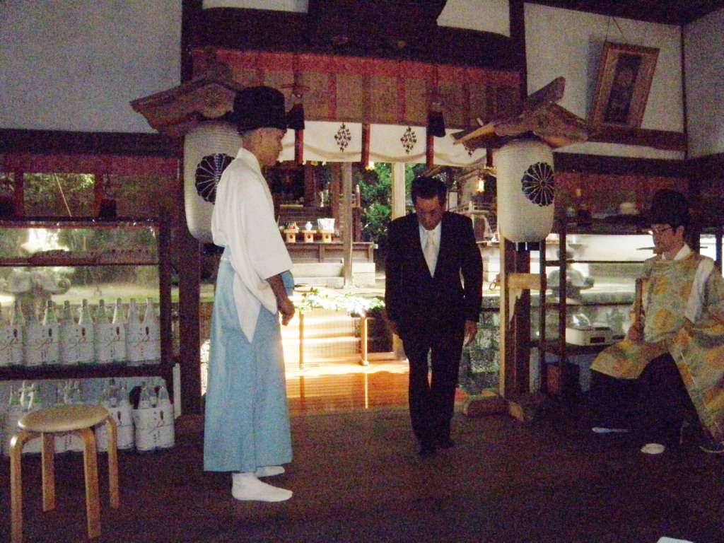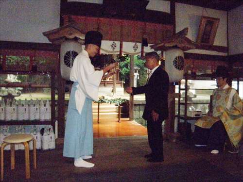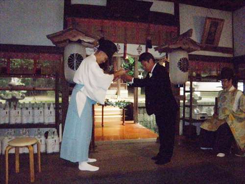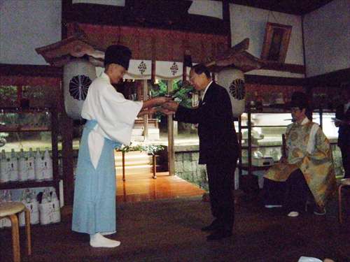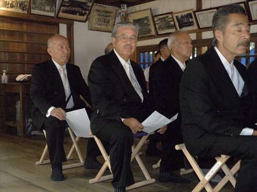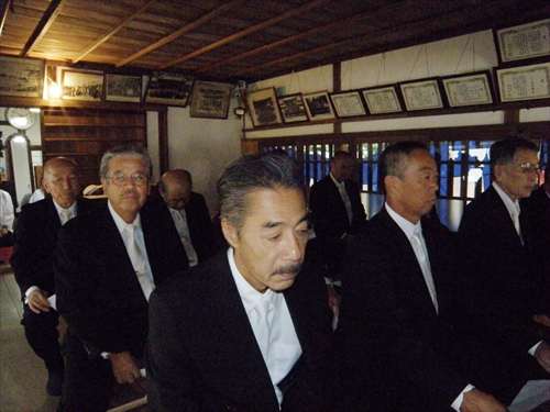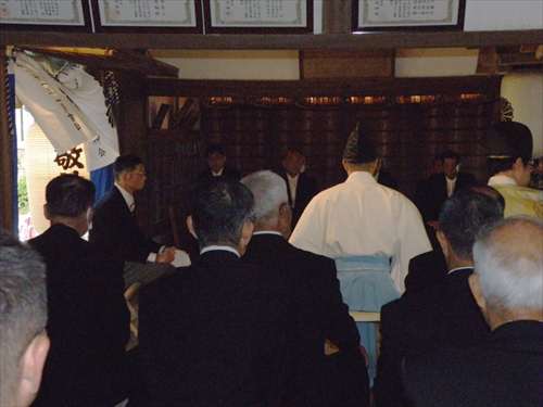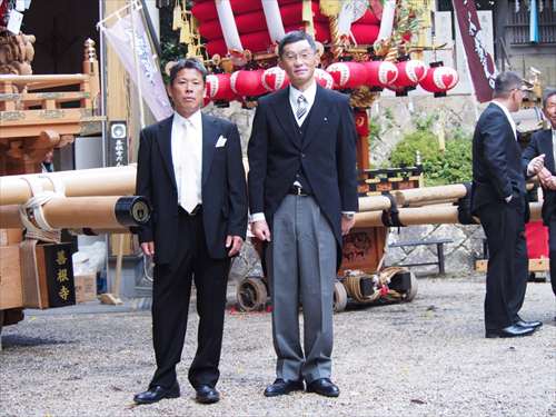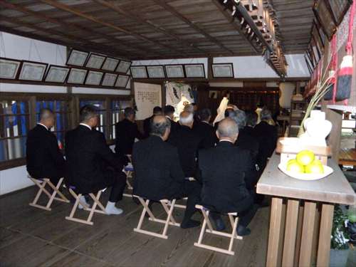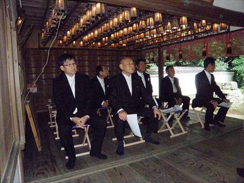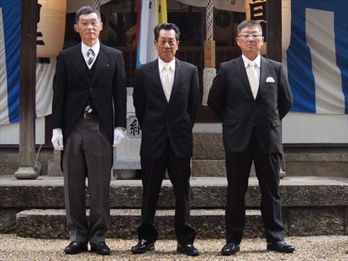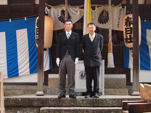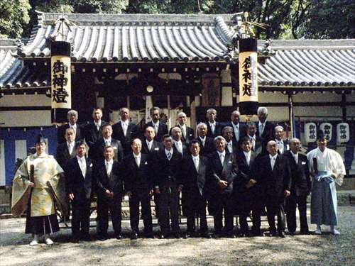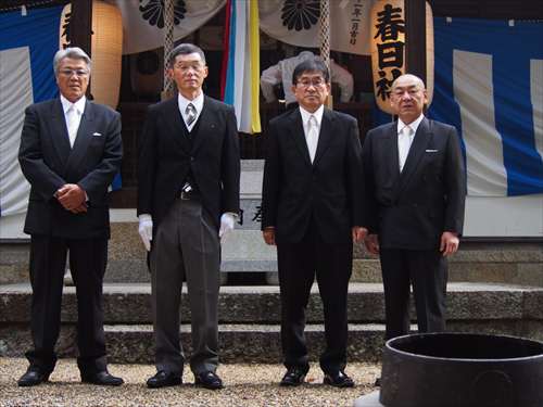 善根寺春日神社 敬神会 会長 東野 光男 左から1人目 宮座主 山添明彦 左から2人目 |