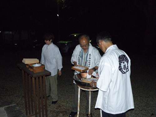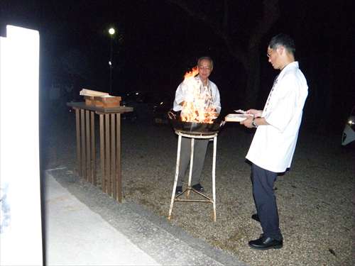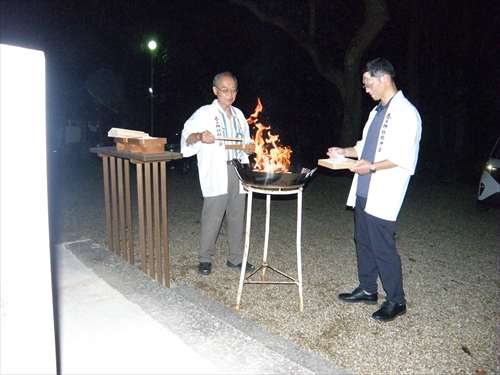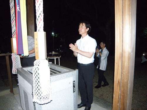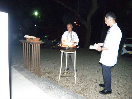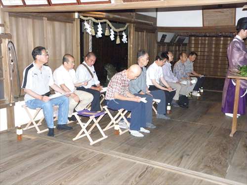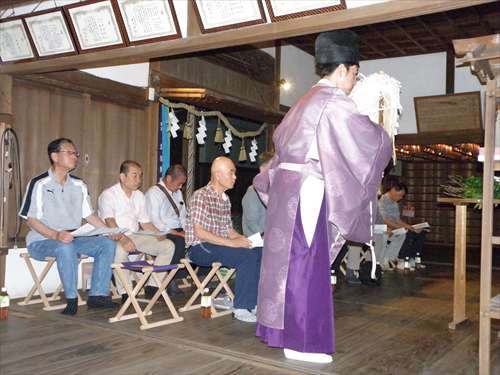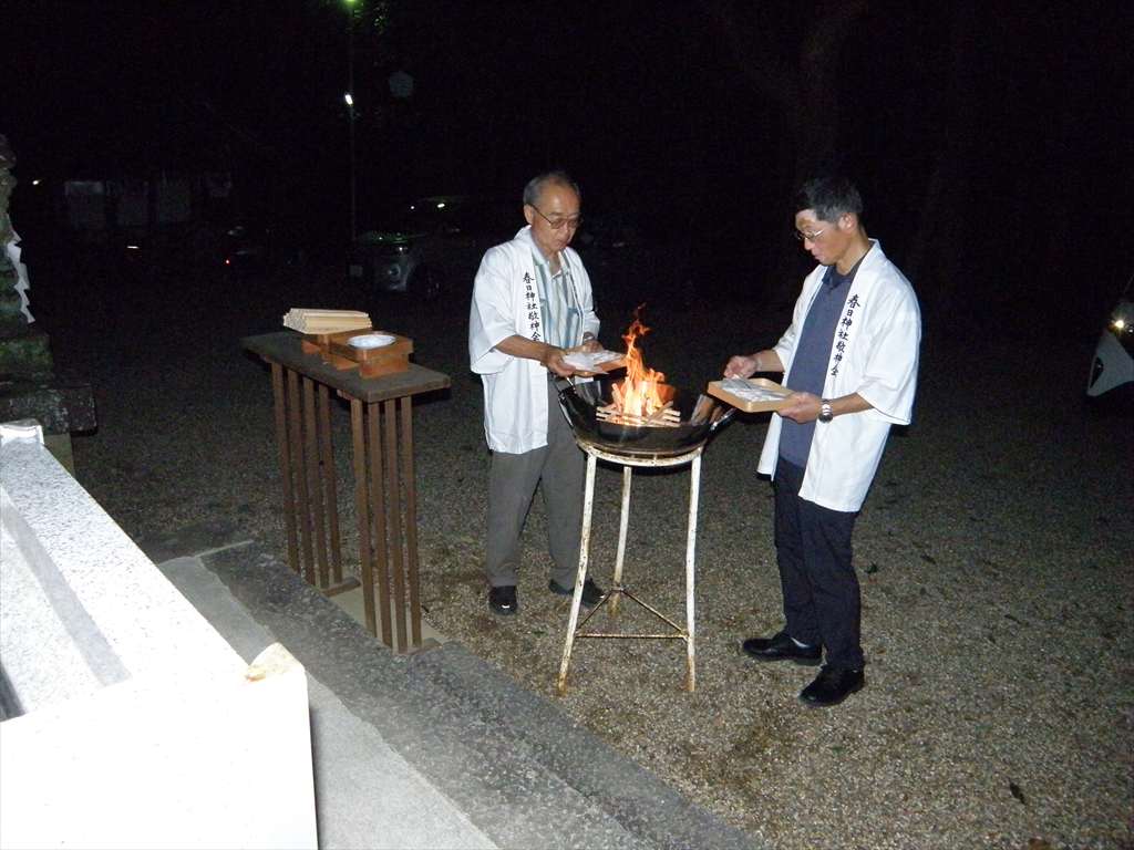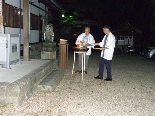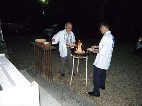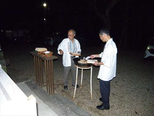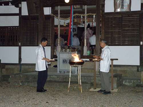6月30日に行われる夏越の祓では、 1年の前半を無事に過ごせたことに感謝するとともに、 半年間の罪や穢れをお祓いし、 残り半年も清らかな気持ちで過ごせるよう願う神事です。当社では 人形(ひとがた)を用いて祓をします。人の形に切り抜いた紙に、 自分の名前と年齢を書き、 その人形に息を吹きかけ自分の罪や穢れを人形に移し、 その人形を焚き上げすることで、 自分の代わりに清めてもらいます。」