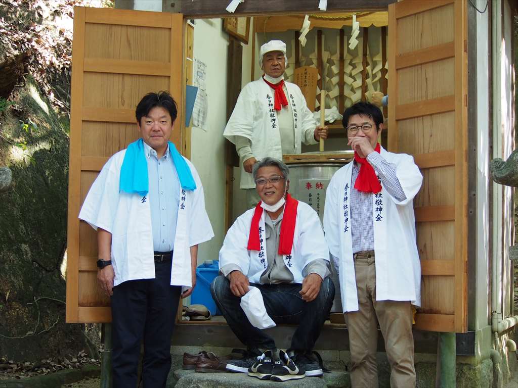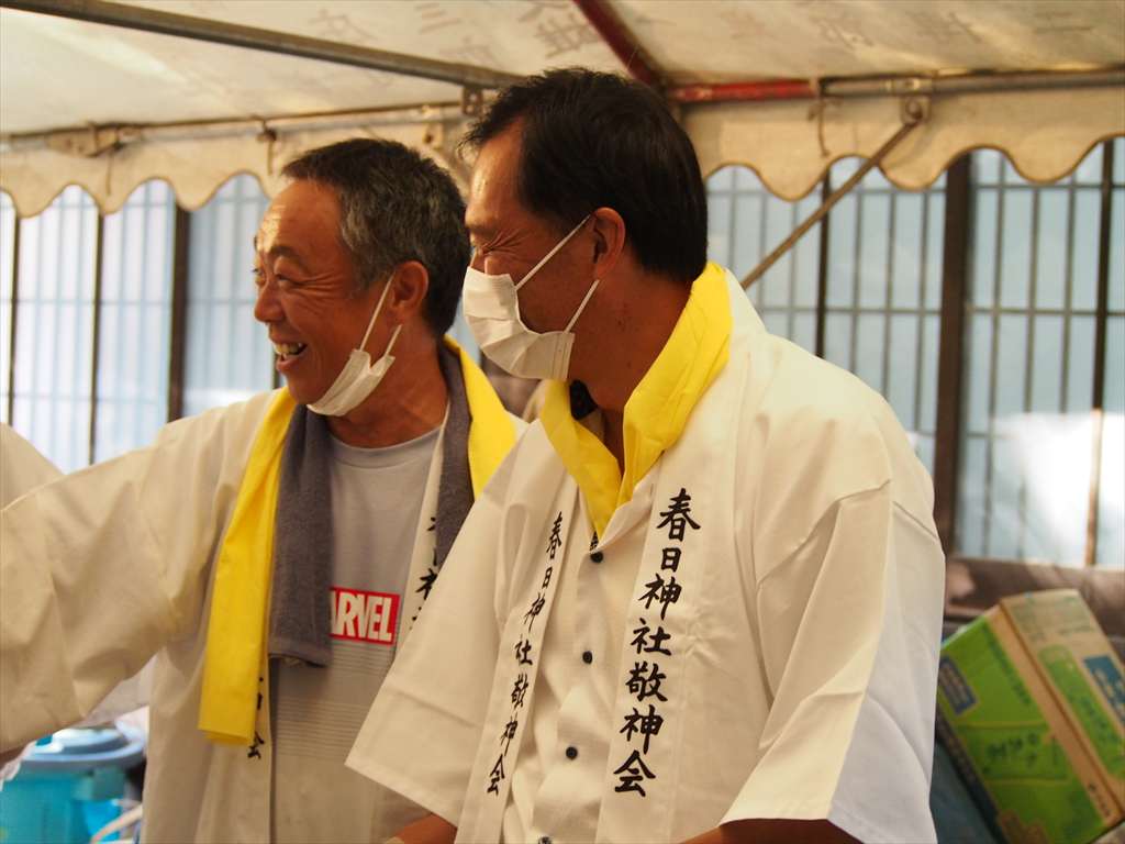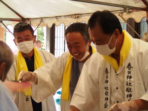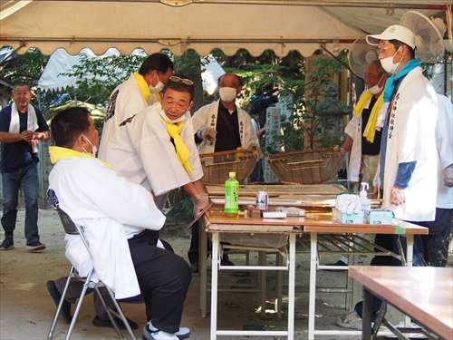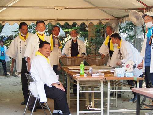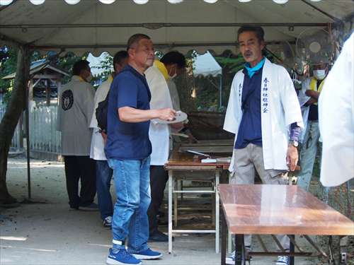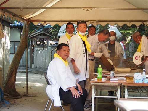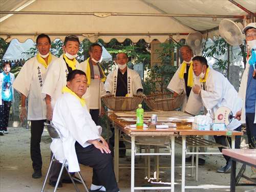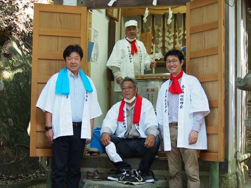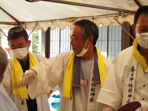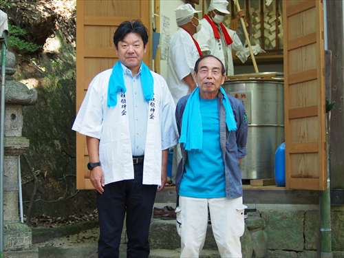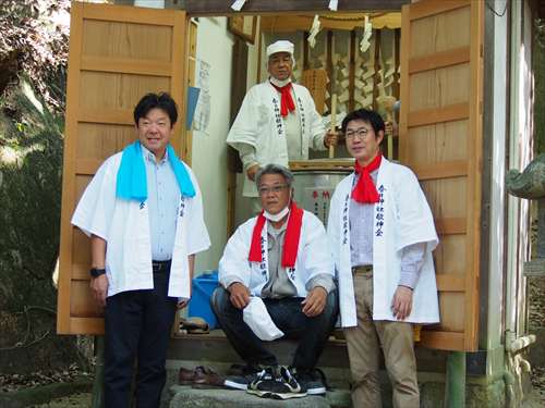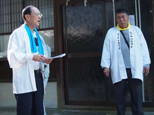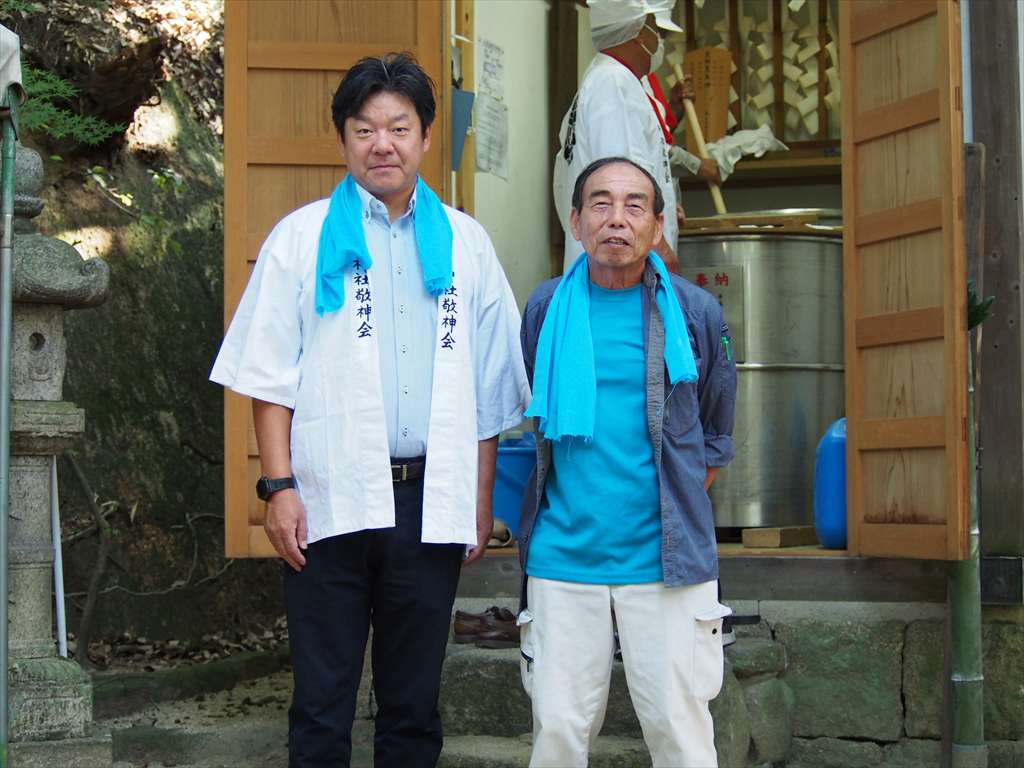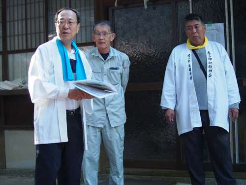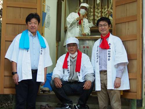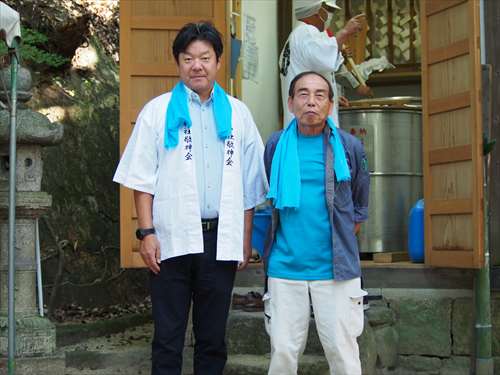 善根寺 春日神社 敬神会 会長 東野 光男 (左方の人) |