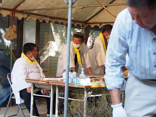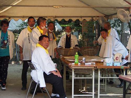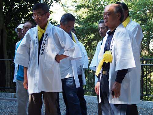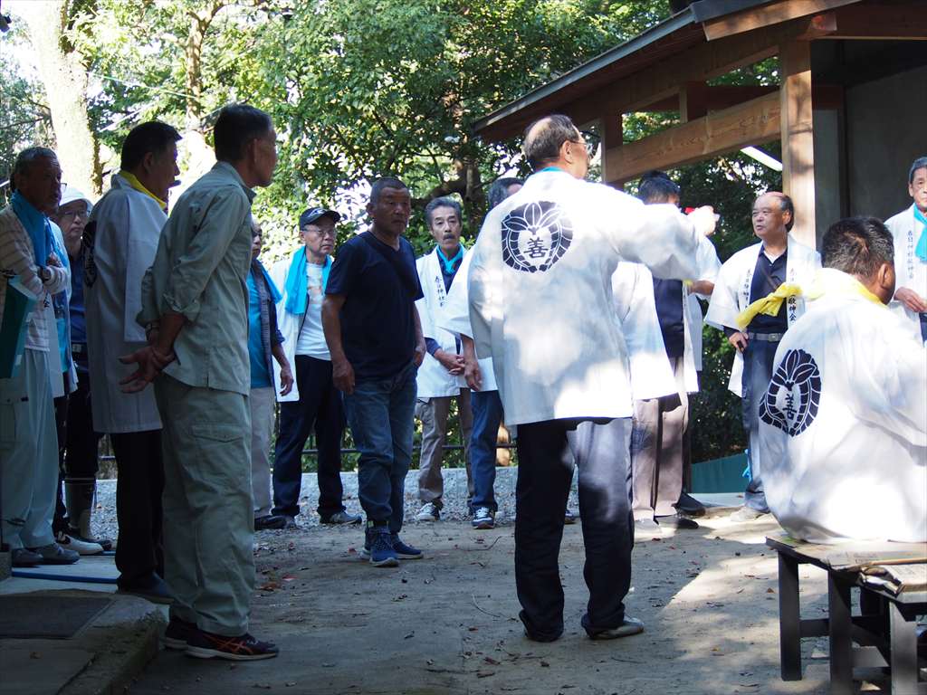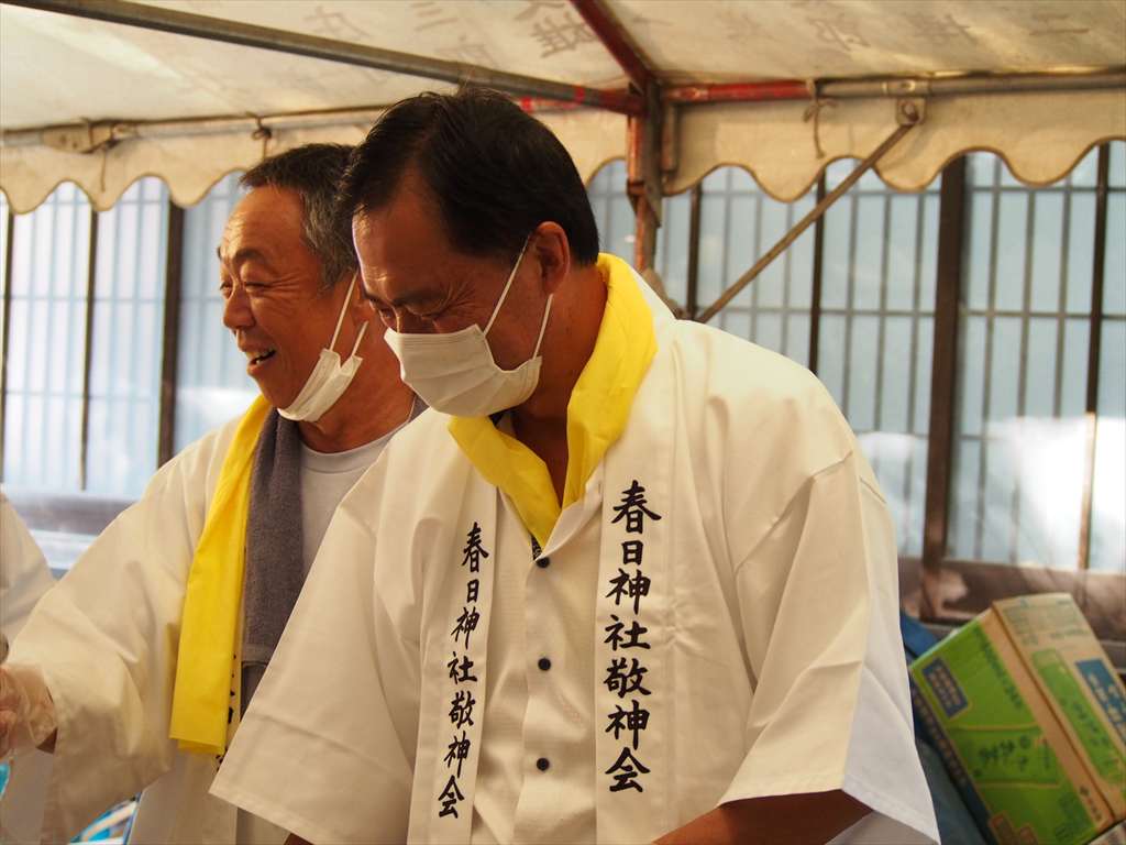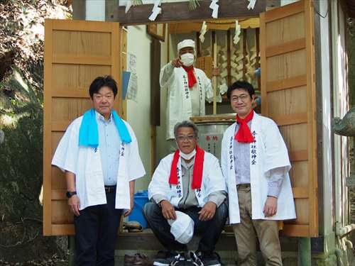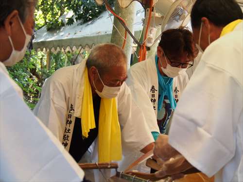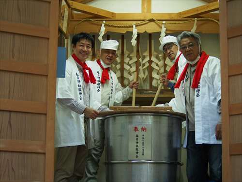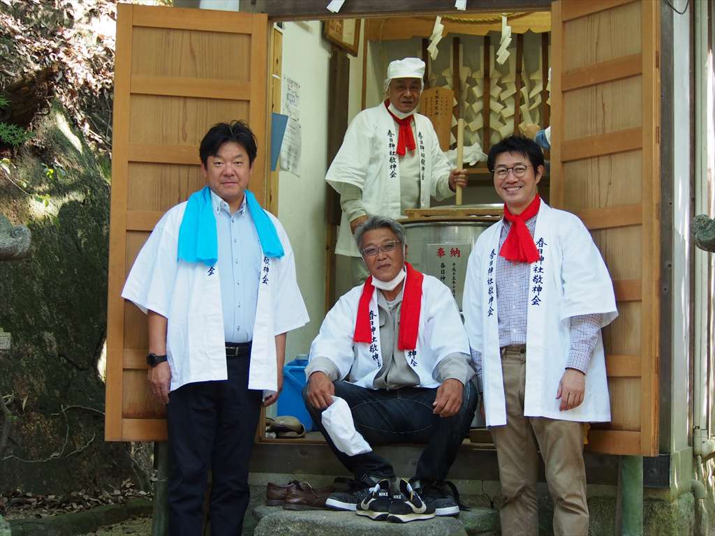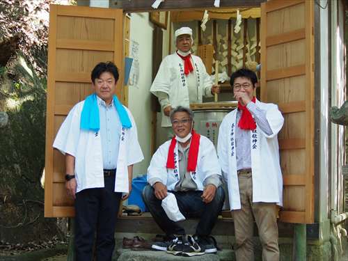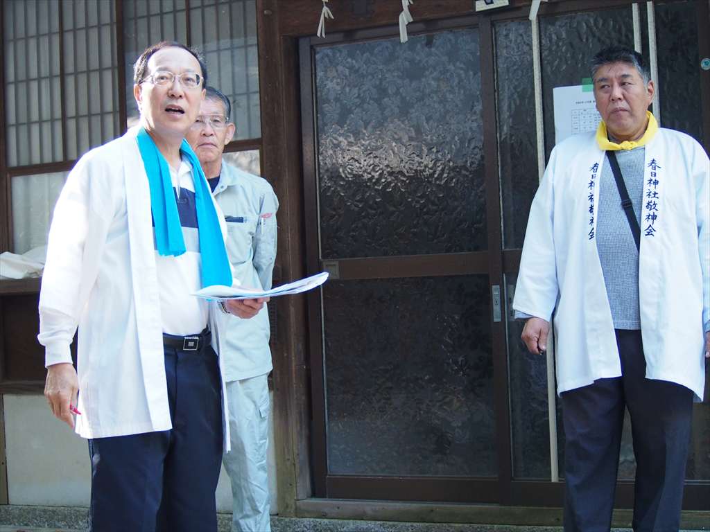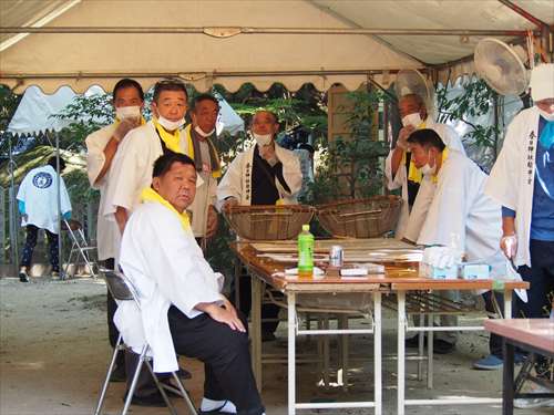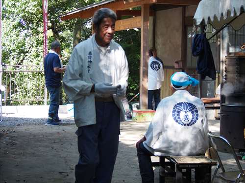 善根寺 春日神社 敬神会 会長 東野 光男 (左方の人) |