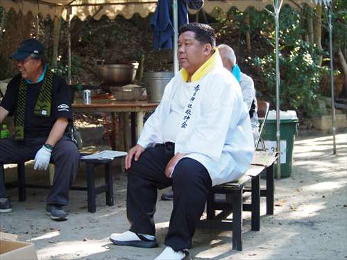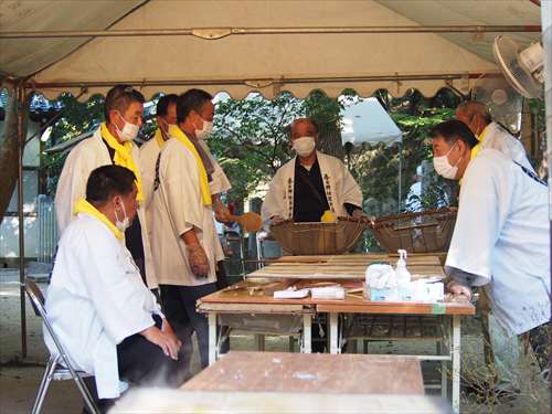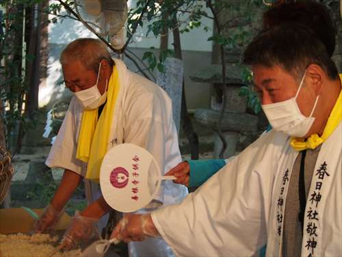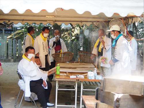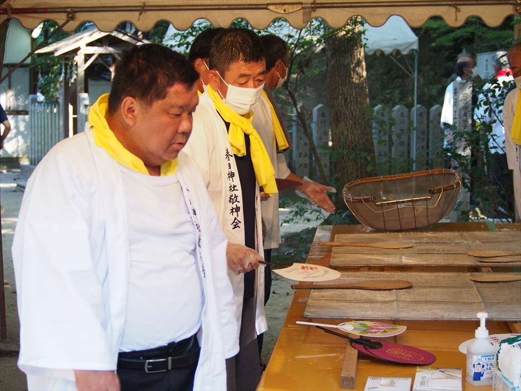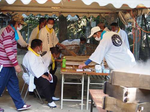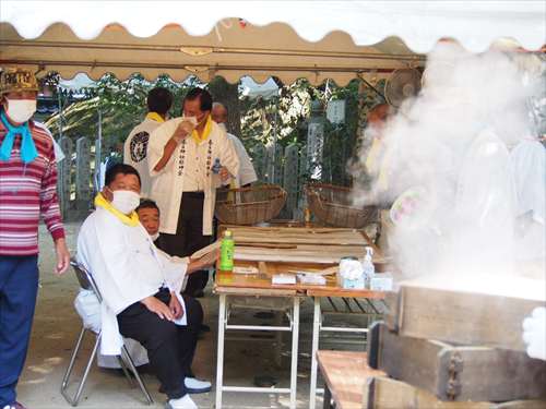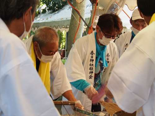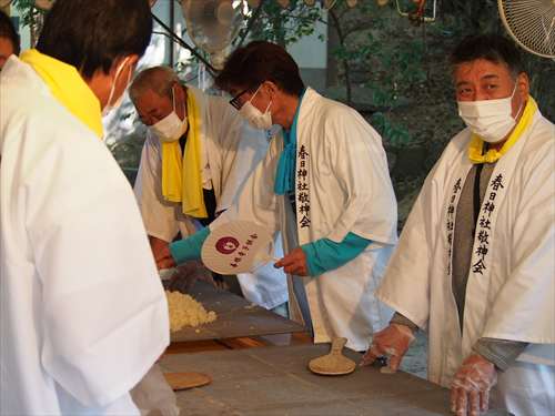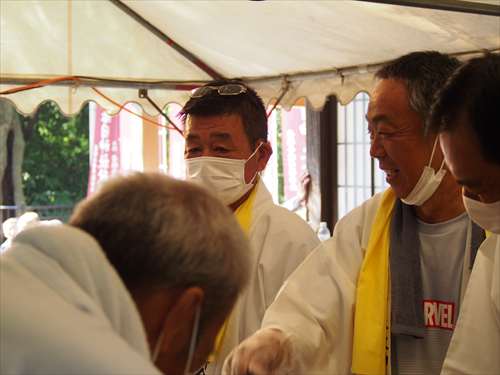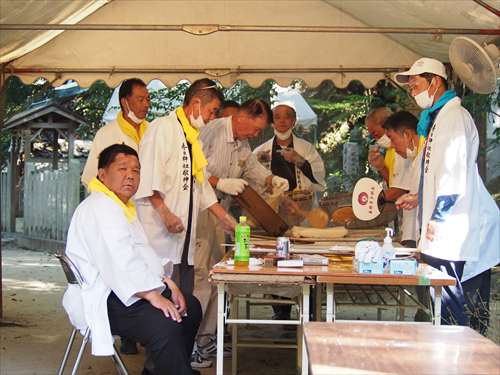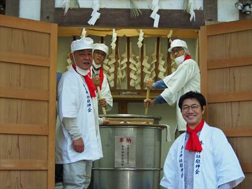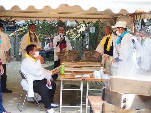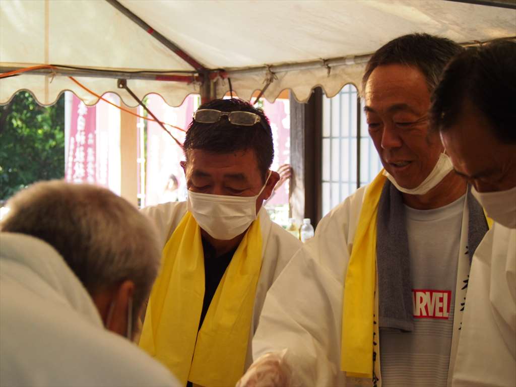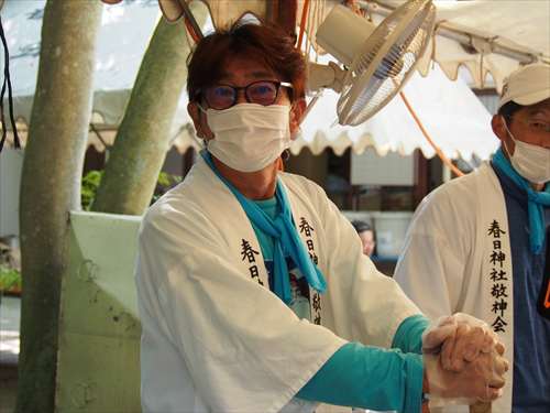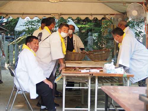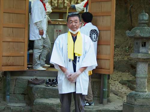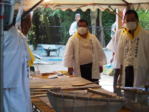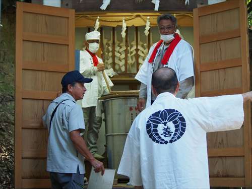 善根寺 春日神社 敬神会 会長 東野 光男 (左方の人) |
