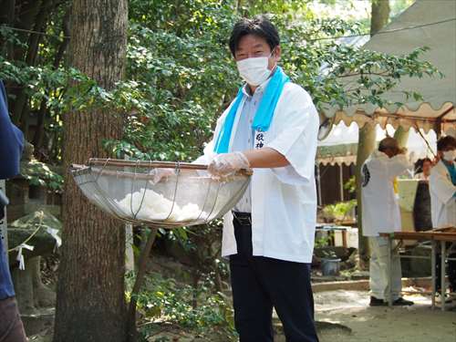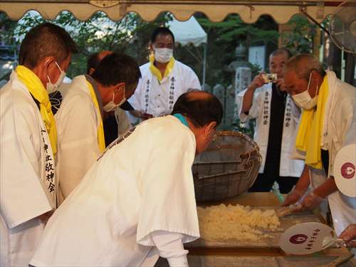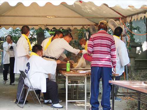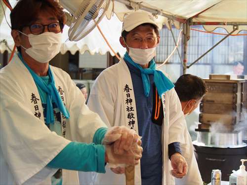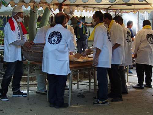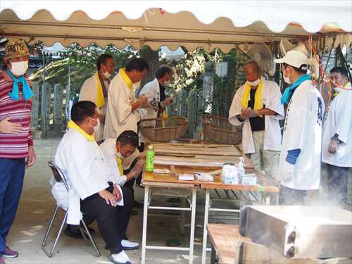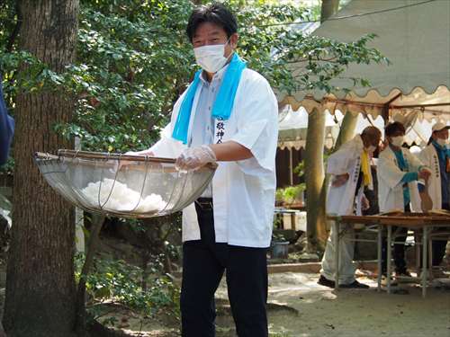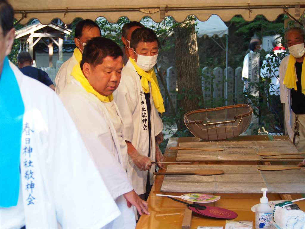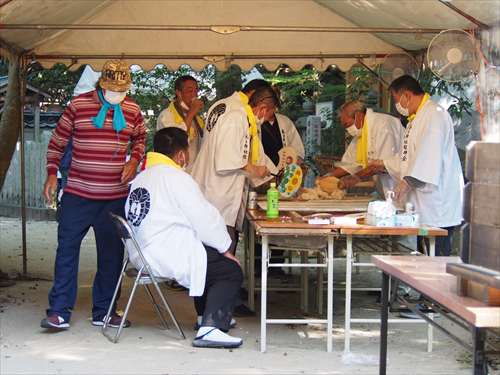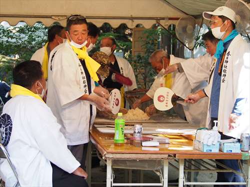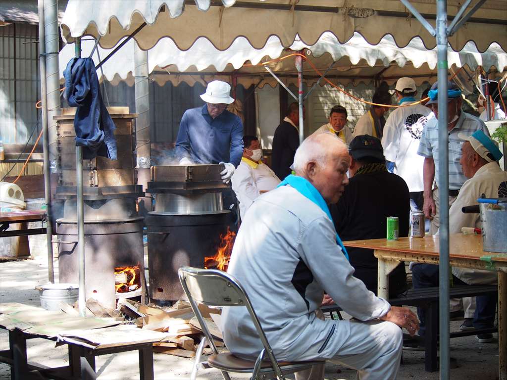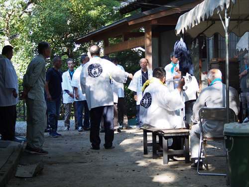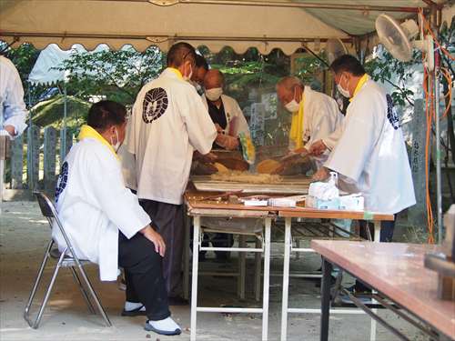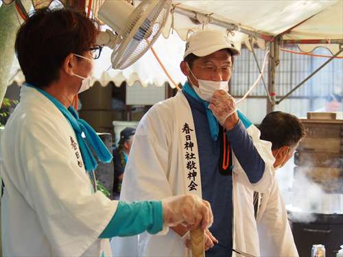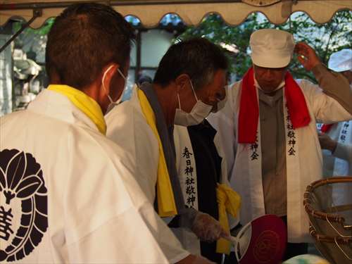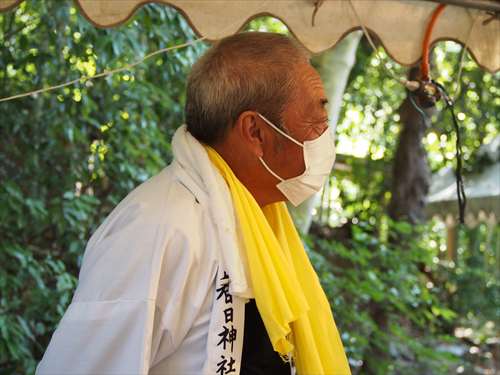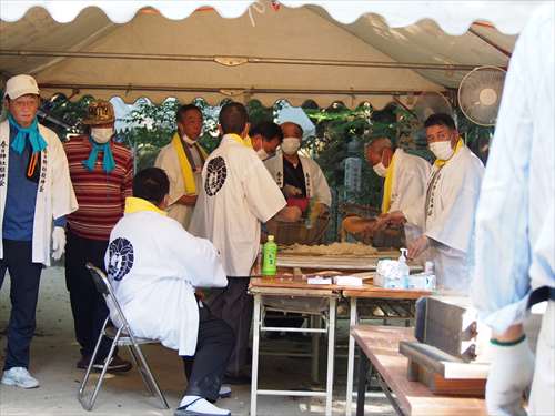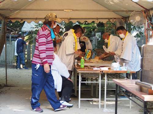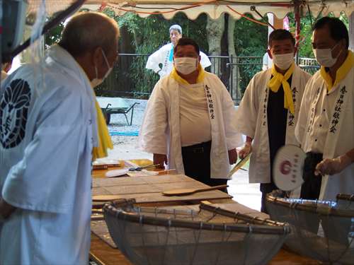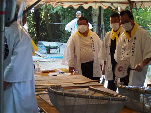 善根寺 春日神社 敬神会 会長 東野 光男 (左方の人) |