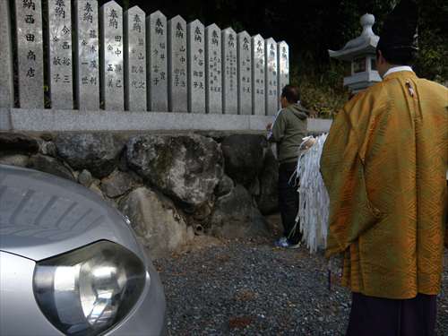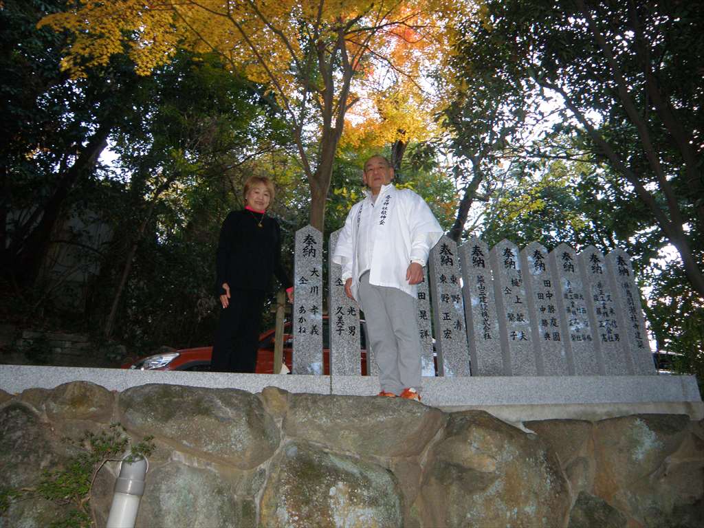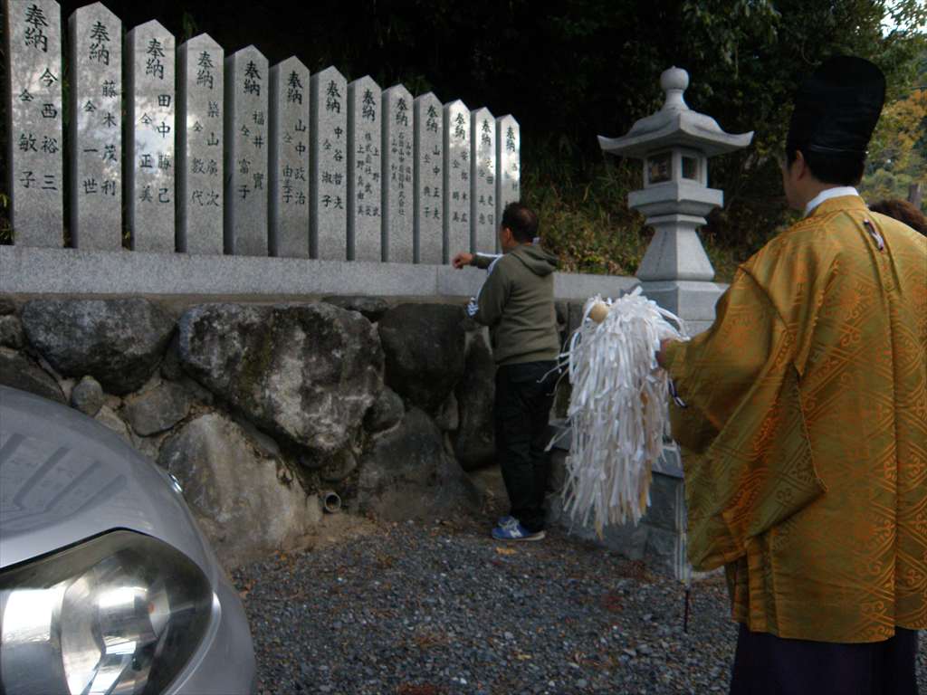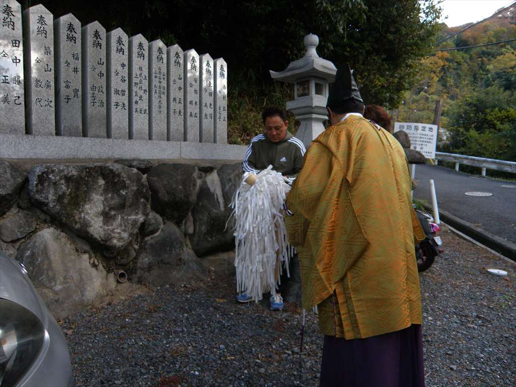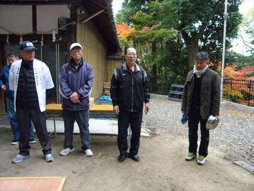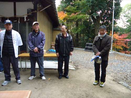 宮座主名左より 山口元 竹内秀次 大川孝義 松佑吉 奉納品 ブロー 2台 チェンソオ 2台 インパクト 1台 |
