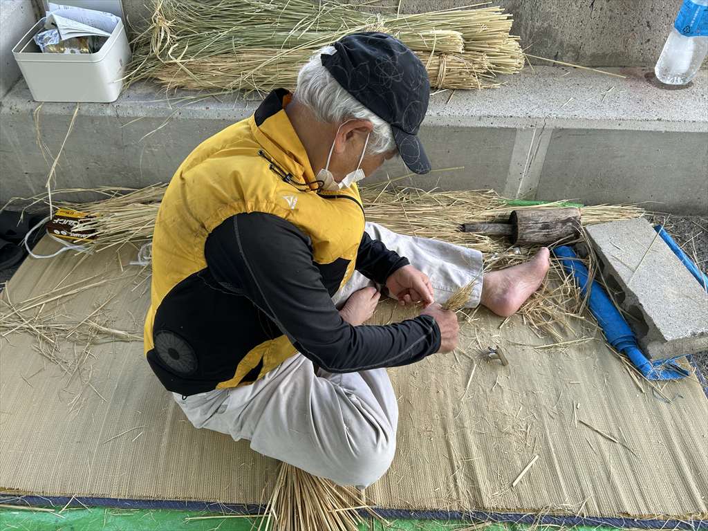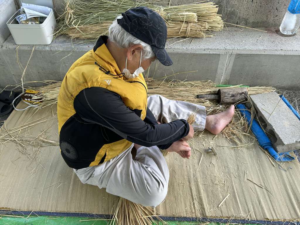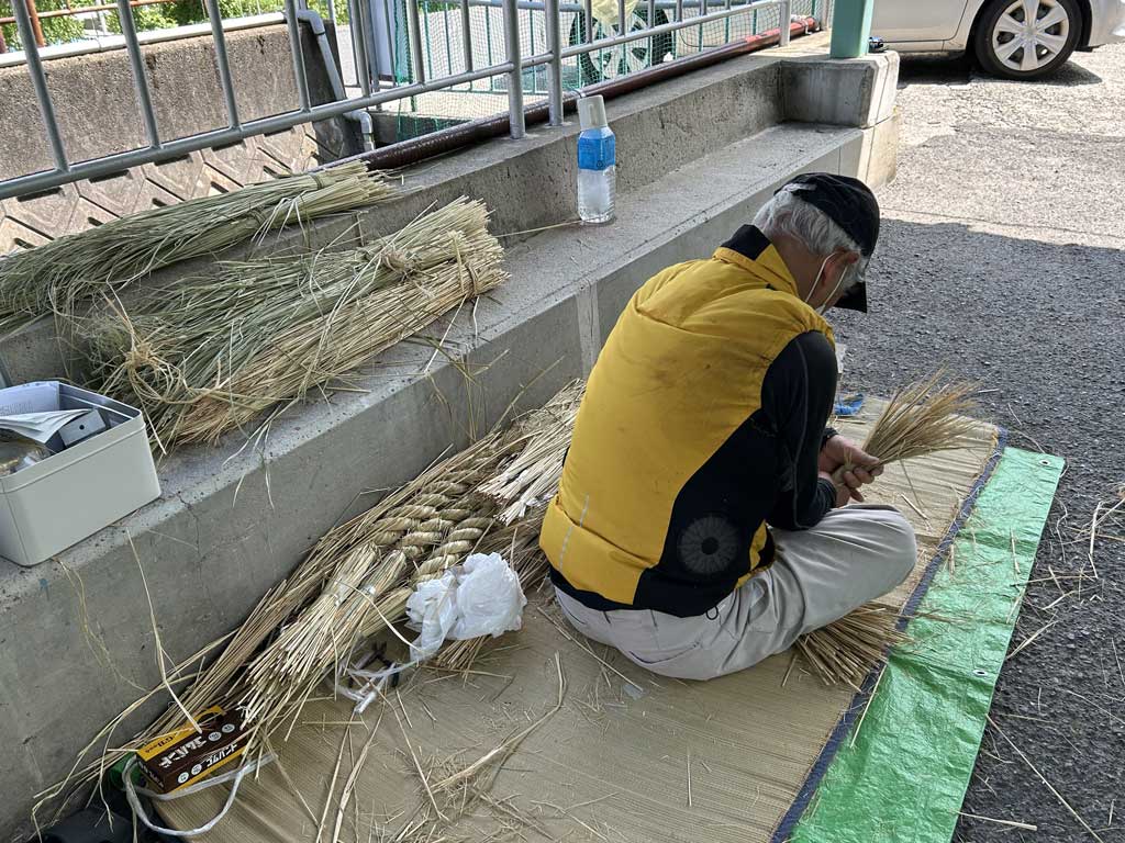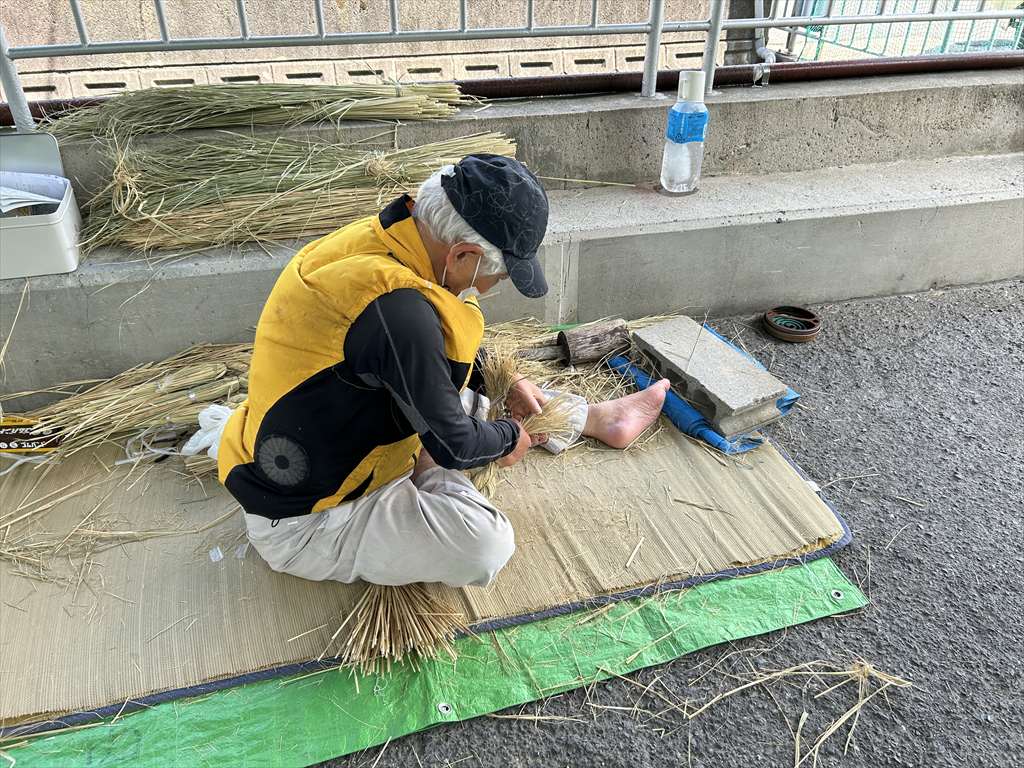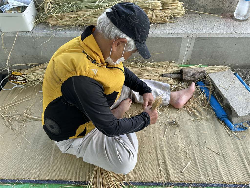わらをそのまま使うのではなく、以下の手順で下準備をします。わらを叩く: 木槌や金槌でわら全体をまんべんなく叩き、繊維を柔らかくします。こうすることで、よりなめらかで撚りやすい縄になります。