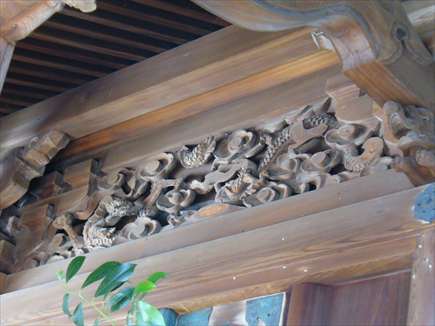した真言宗の寺です。 彫られた春日社の文字に墨を入れ、輪郭を