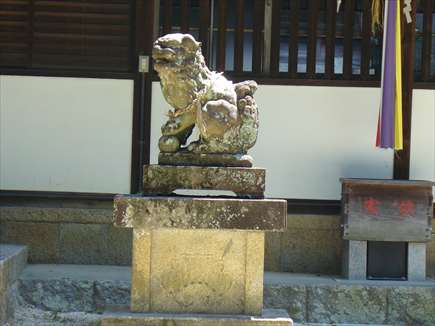 拝殿前にある狛犬に、慶応元年(1865)の年号があり |