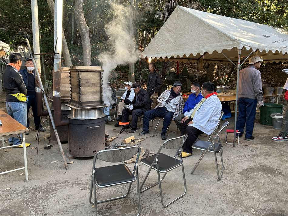 春日神社敬神会が中心となり、還暦を迎えた男性を加えて、来年に還暦を控える男性など例年65〜80名が参加する。醸造方法は奈良の酒造元が改良し、参加資格も古式から変えられたが、山中にある湧水地「龍の口」で水汲み、伝統ある神事を、敬神会によって引き継でおります。神事は10月1日の水汲みに始まり、蒸米、米麹、水(龍の口の浄水)、乳酸、酵母を原材料に、朝夕2回の攪拌作業を経て醸され、14日の蔵出しには例年500g余りの御神酒が完成し、還暦を迎えた宮座を祝う神事のあと、参拝者にふるまわれる。今でもゆかりの枚岡神社には届けています。